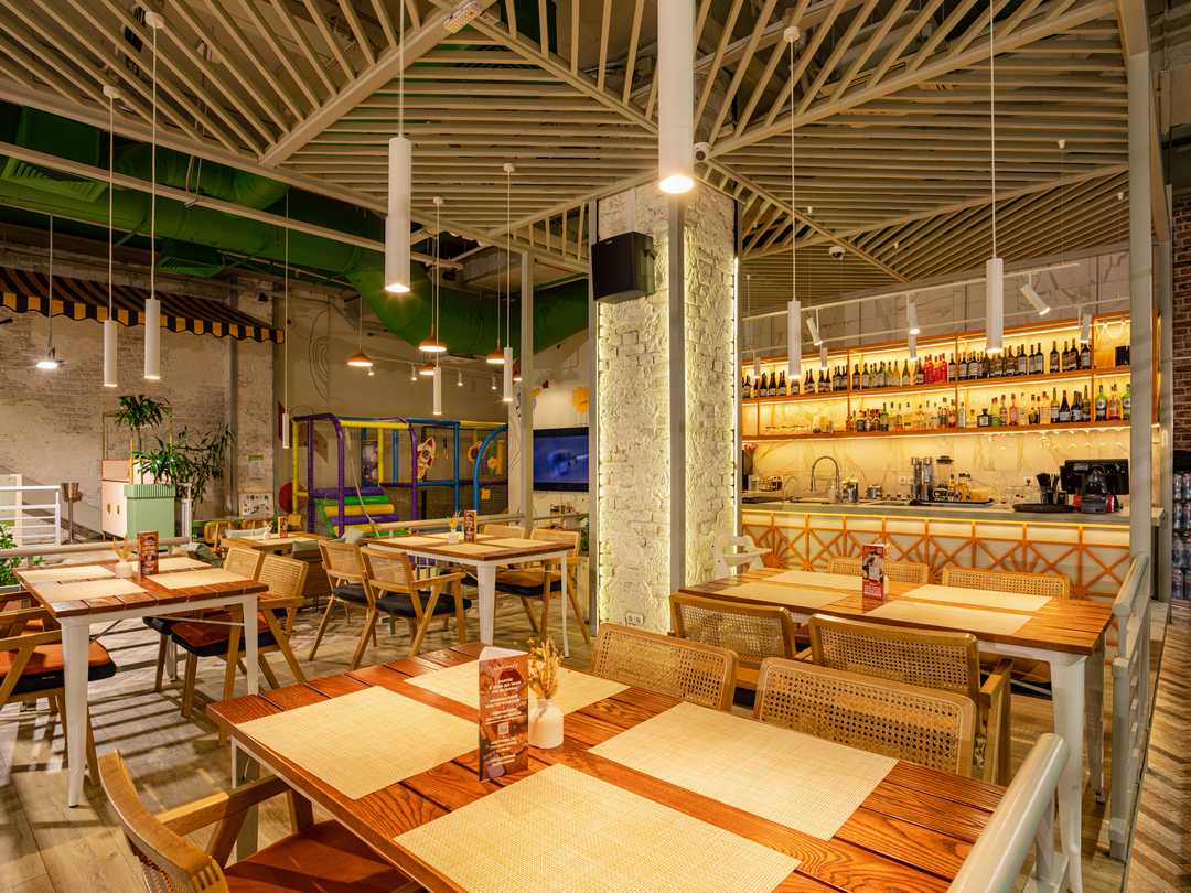 Большое семейное кафе, где так уютно и просторно. Здесь много света и комфорта: большие столы для всей семьи, отдельные зоны для компаний и отдельный уголок для малышей. В меню представлены разнообразные блюда, веселые мероприятия и игры делают кафе отличным местом для семейного отдыха в любой день.